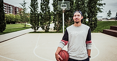 Zum Start in den Tag gibt es für Jan, Mitgründer von „Waterkant Touren“, erstmal eine Runde Sport. Da er beruflich viel durch die HafenCity tingelt, hat er den Lohsepark jüngst zu seinem neuen Lieblingsspot zum Basketballspielen erkoren.