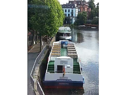 Der Anleger in Bergedorf liegt am Serrahn und ist nicht nur für hier an- und ablegende Boote und Schiffe attraktiv, sondern lockt ebenso Spaziergänger auf ihrem Weg am Wasser entlang an. Unter den hier ablegenden Schiffen und Booten sind sowohl Barkassen als auch der Alsterdampfer.