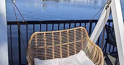 Von hier aus hat man einen ruhigen Blick über das Wasser während man sein Frühstück in der Sonne genießt oder auf einer der gemütlichen Liegen die Segelboote beobachtet. Die Karte bietet Salate und kleine Snacks, sowie verschiedene Getränke. Ausgewählte DJs spielen Musik passend zur Atmosphäre.