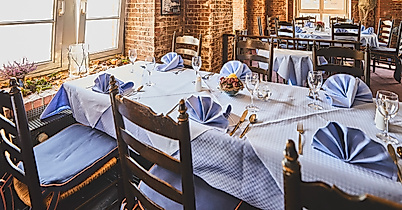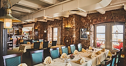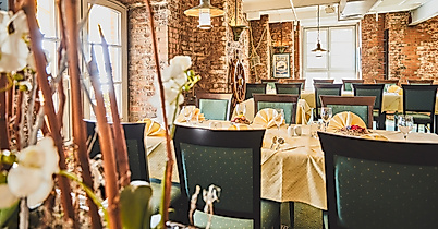 Das Restaurant Hamburger Elbspeicher im 1. Stock eines alten Elbspeichers eröffnet Ihnen herrliche Ausblicke auf die Elbe, den Hamburger Hafen, Kräne, Dock 11 und auf Blohm und Voss - im Sommer auch auf der großen Elbterrasse.