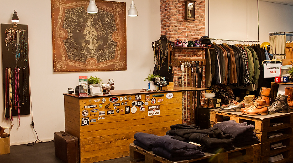 Bei Bikers and Babes im Hamburger Karoviertel finden nicht nur Motorrad- und Vintage-Fans ihre neuen Lieblingsteile - der stylische kleine Shop bietet auch alltagstaugliche Kleidung und Accessoires für Damen- und Herren an.